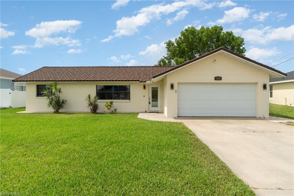 Welcome to your new home in the sought-after SW Cape Coral location, where all assessments are not only in but also paid for. This meticulously maintained property boasts a delightful combination of comfort, style, and modern conveniences. As you step inside, you'll be greeted by the inviting ambiance of this 2-bedroom, 2-bathroom, 2-car garage residence. The heart of the home lies in its expansive island kitchen, perfect for culinary adventures and entertaining guests. Feel safe with the new roof which is by Trademark Roofing, which is a stone coated steel roofing designed to look similar to barrel tiles and designed to better withstand weathering and hail damage. Equipped with Wi-Fi accessible thermostat and remote outlets integrated into the island, it seamlessly blends functionality with convenience, making it a standout feature for any homeowner. Aesthetic charm meets functionality with the farmhouse barn door leading to the guest suite, adding a touch of rustic elegance to the space. The spacious family room invites relaxation and leisure, enhanced by French doors that open to the screened lanai, where you can unwind amidst the serene surroundings. Throughout the home, neutral paint tones complement the timeless appeal of tile and laminate flooring, creating a cohesive and inviting atmosphere. Solar shades adorn the windows, offering not only privacy but also assisting in keeping the interior cool during warmer months, ensuring comfort year-round. Outside, the property offers an additional rear exterior concrete pad, providing a versatile space for a barbecue area or potential expansion possibilities in the future, catering to your evolving needs and preferences. With its charming features, modern amenities, and prime location, this home presents an exceptional opportunity for discerning buyers. Don't miss out on the chance to make it yours. Schedule your viewing today and seize the opportunity to elevate your lifestyle in this captivating abode. Don't delay, as this gem won't stay on the market for long!